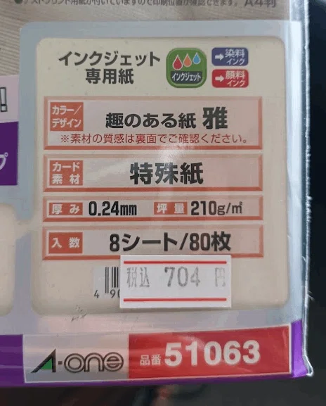 A4のマルチカードに印刷