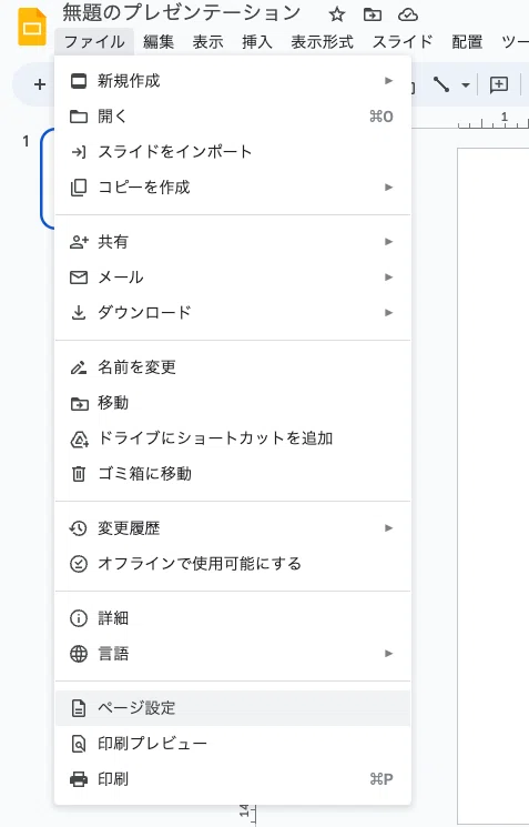 新規スライドを作成し、最初にページ設定をします。
