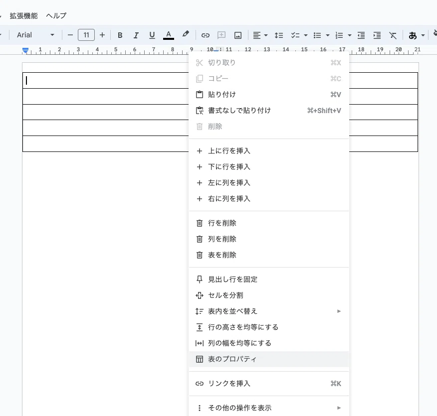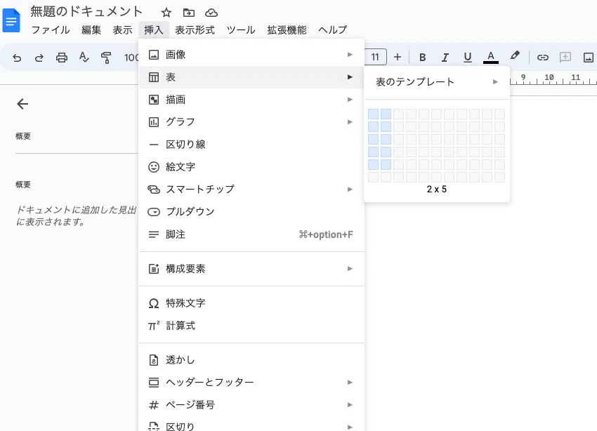 表を挿入