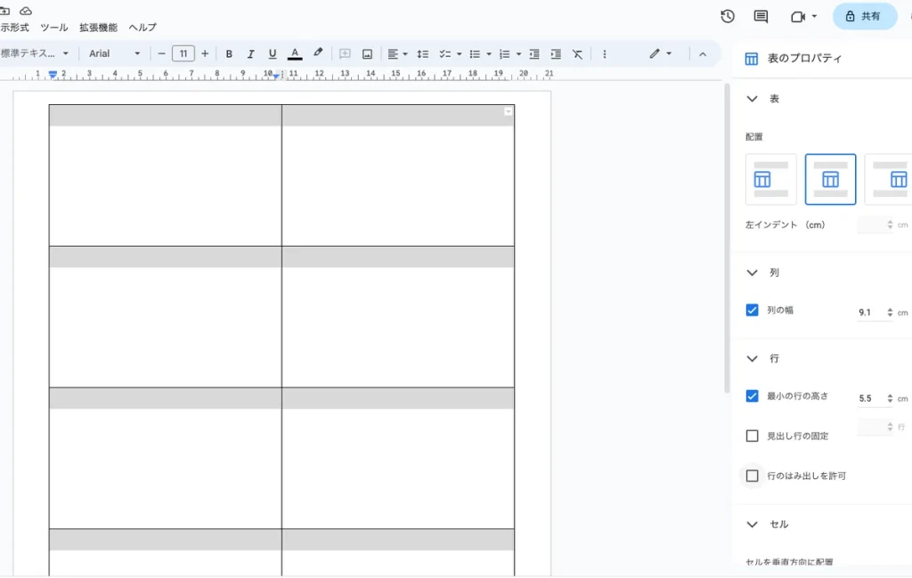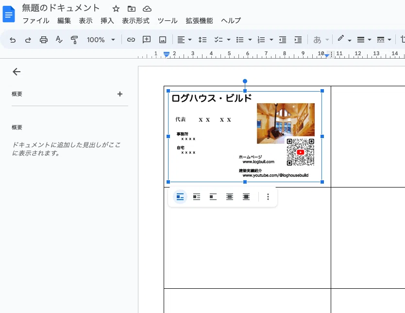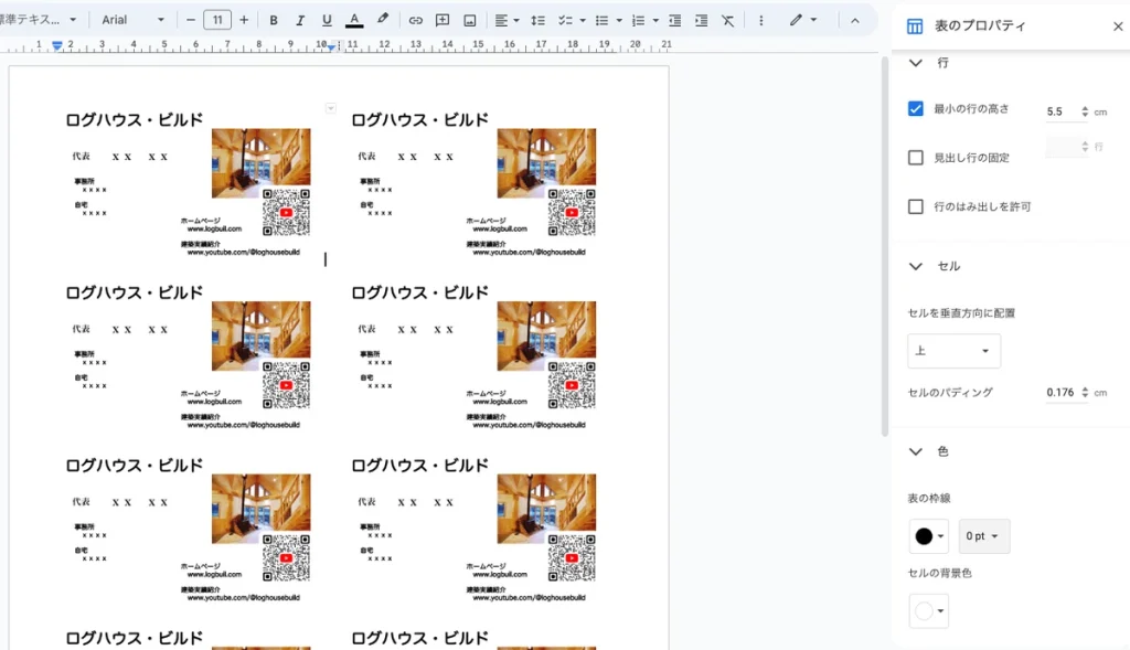 Googleドキュメントの表機能で名刺コンテンツをレイアウト