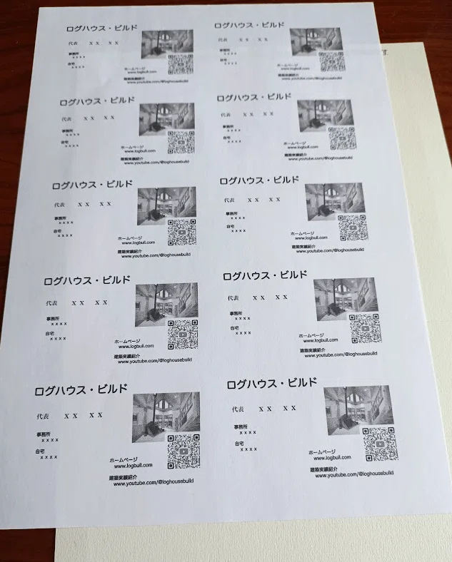 試しにドキュメントで作成した10枚の名刺ページを普通のA4用紙に印刷し、マルチカードと重ねて切れ目が合っているか確認しました。