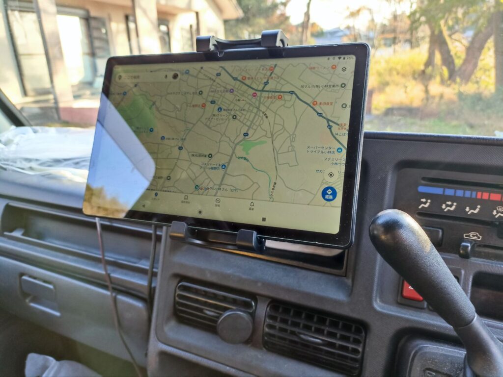 仕事でもつかっているスバルのサンバーバンはナビがなく、手持ちのアンドロイドタブレットをナビとしてつかっています。