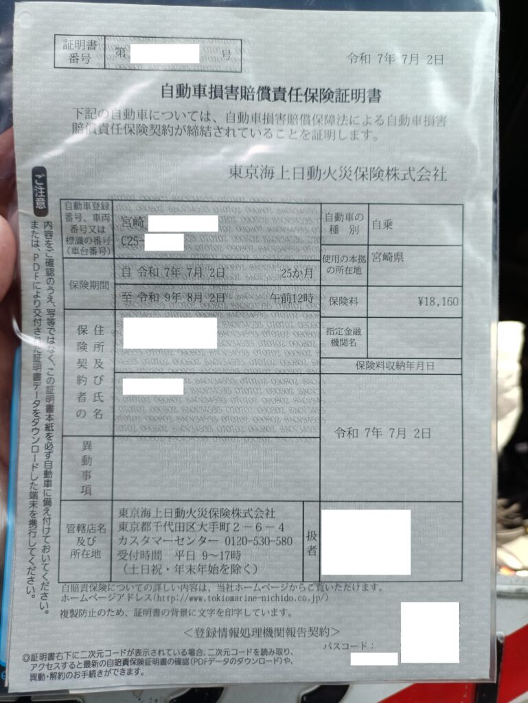 - 更新した自賠責保険証