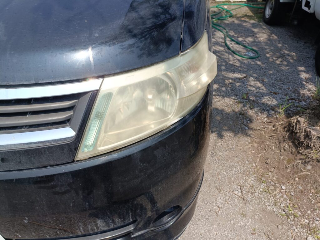 ヘッドライトの明るさについては測定器をもっているわけではなく、見た感じ左のヘッドライトがかなり黄ばんでくすんでいるのが気になりました。
