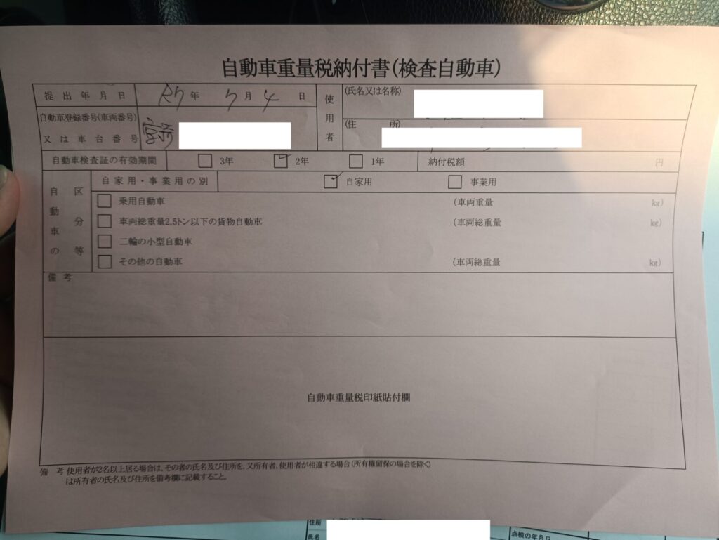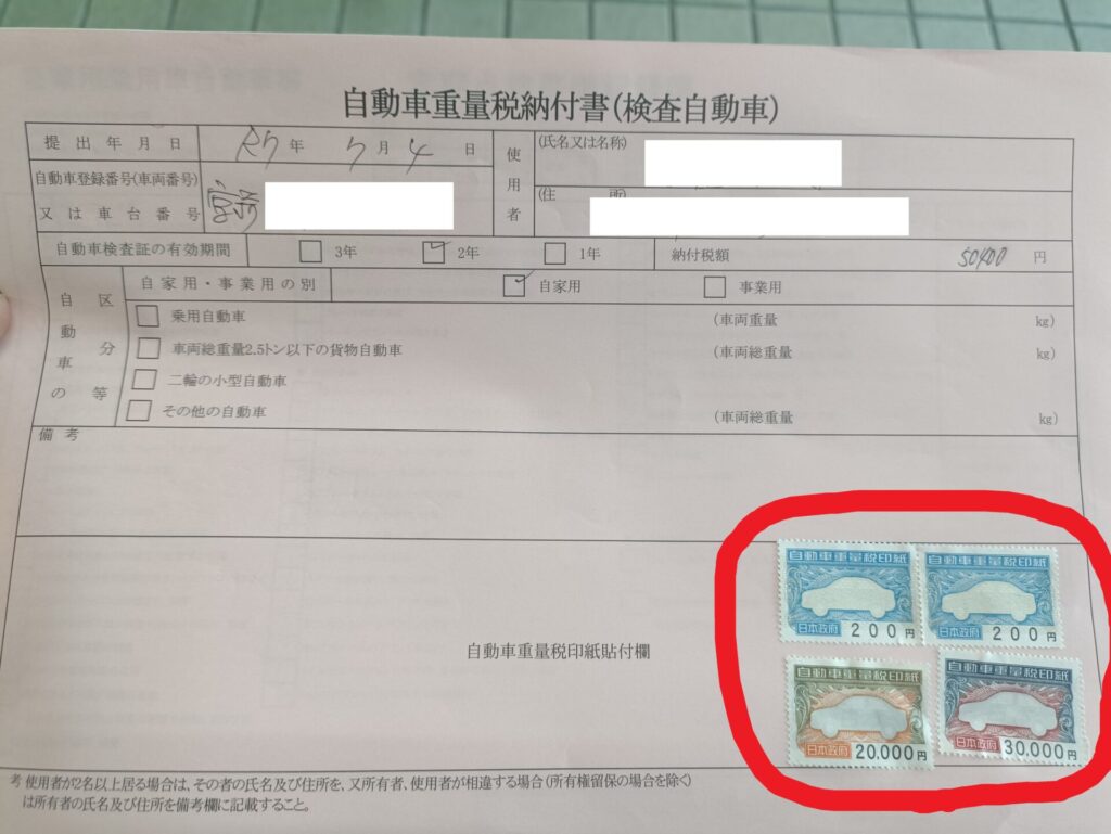 自動車重量税納付書