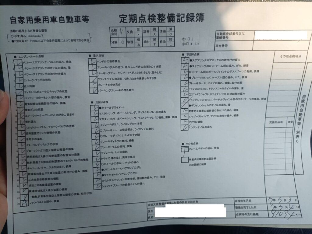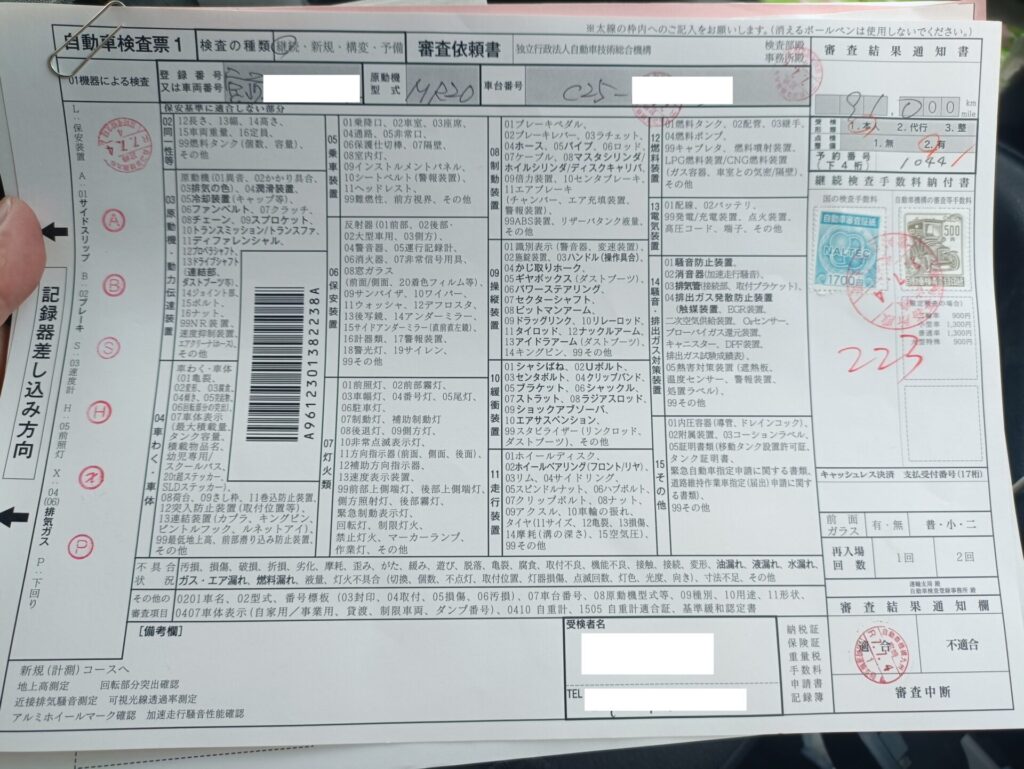 そのため、今回行ったユーザー車検の概要としては以下となります。