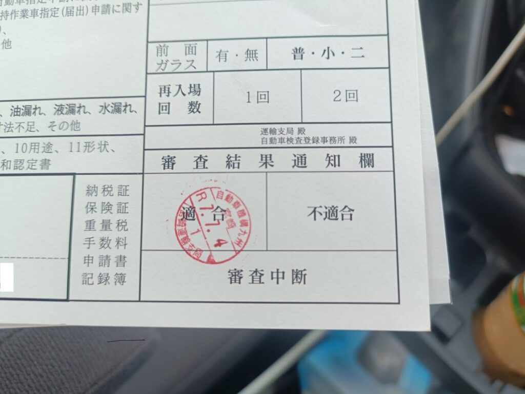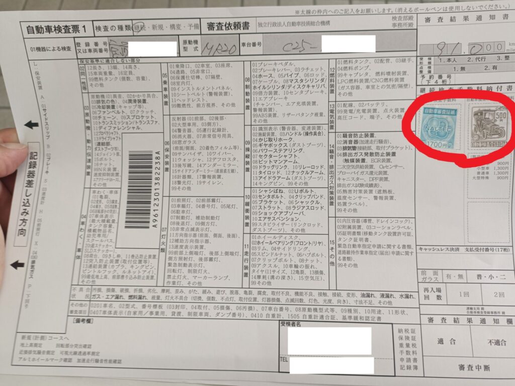 途中で2回ほど自動車検査票を機械に入れて結果を打刻します。
