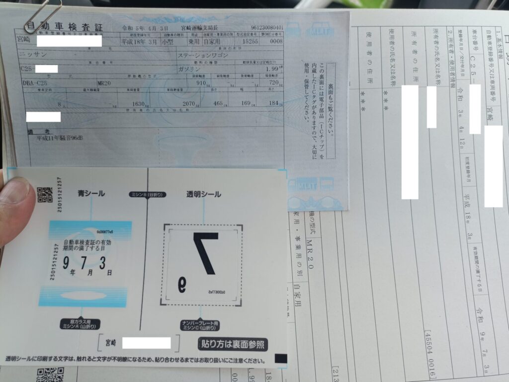 しばらくすると、無事に新しい車検証とシールが交付されました!